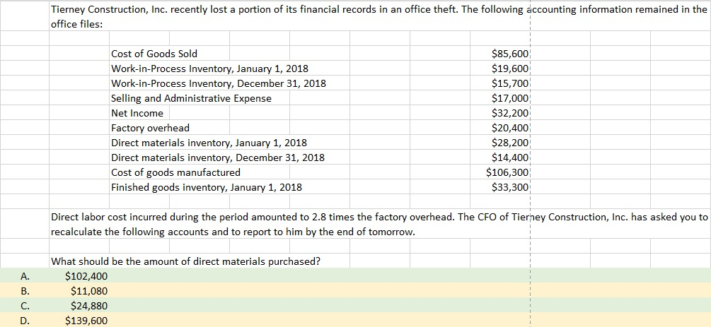 Solved Tierney Construction Inc Recently Lost A Portion Of Chegg Com